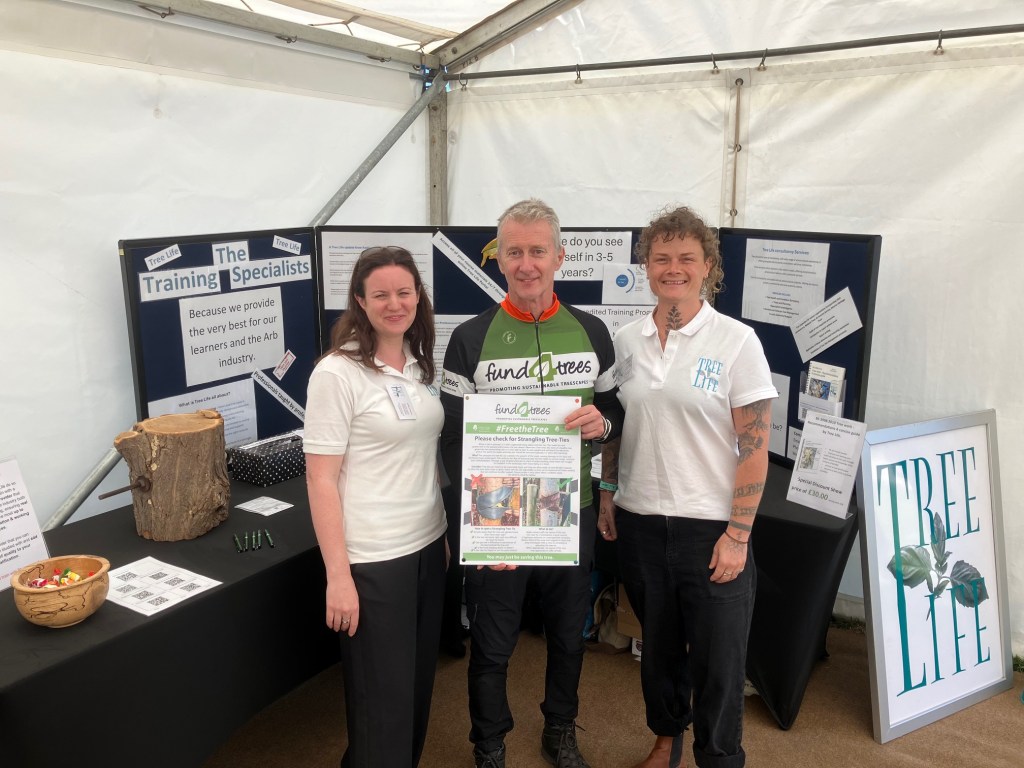 Great to be at the May 2025 Arboricultural Association (AA) national trade-show at Westonbirt Arboretum, for the Fund4Trees 80 x Free Tree (silver birch & field maple) Giveaway. Thanks to Cheviot Trees for sponsoring these feathered whips. Our tree quiz always sparks-up some lively thoughts and discussion on urban tree benefits. And good to show-case our Strangling Tree-Tie national campaign with the AA (campaign partner), Barcham Trees and TreeLife.
